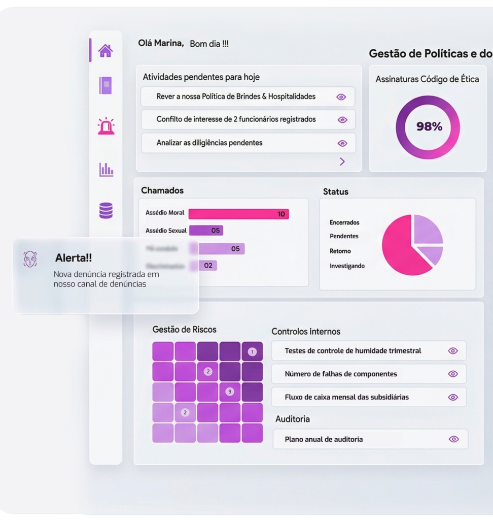 Com um fluxo inteligente, controle de acessos e acompanhamento por protocolo, sua empresa fortalece a cultura de compliance e atua de forma preventiva contra riscos e irregularidades.